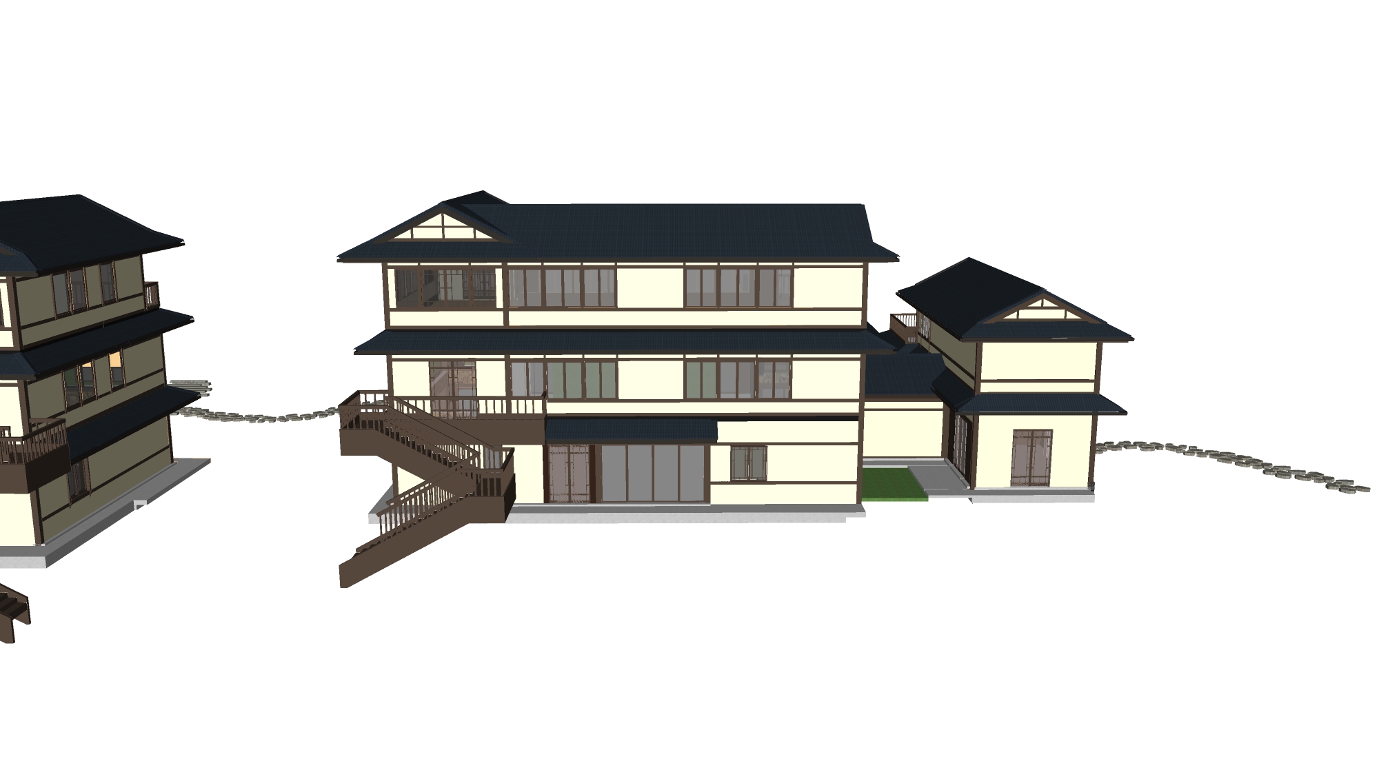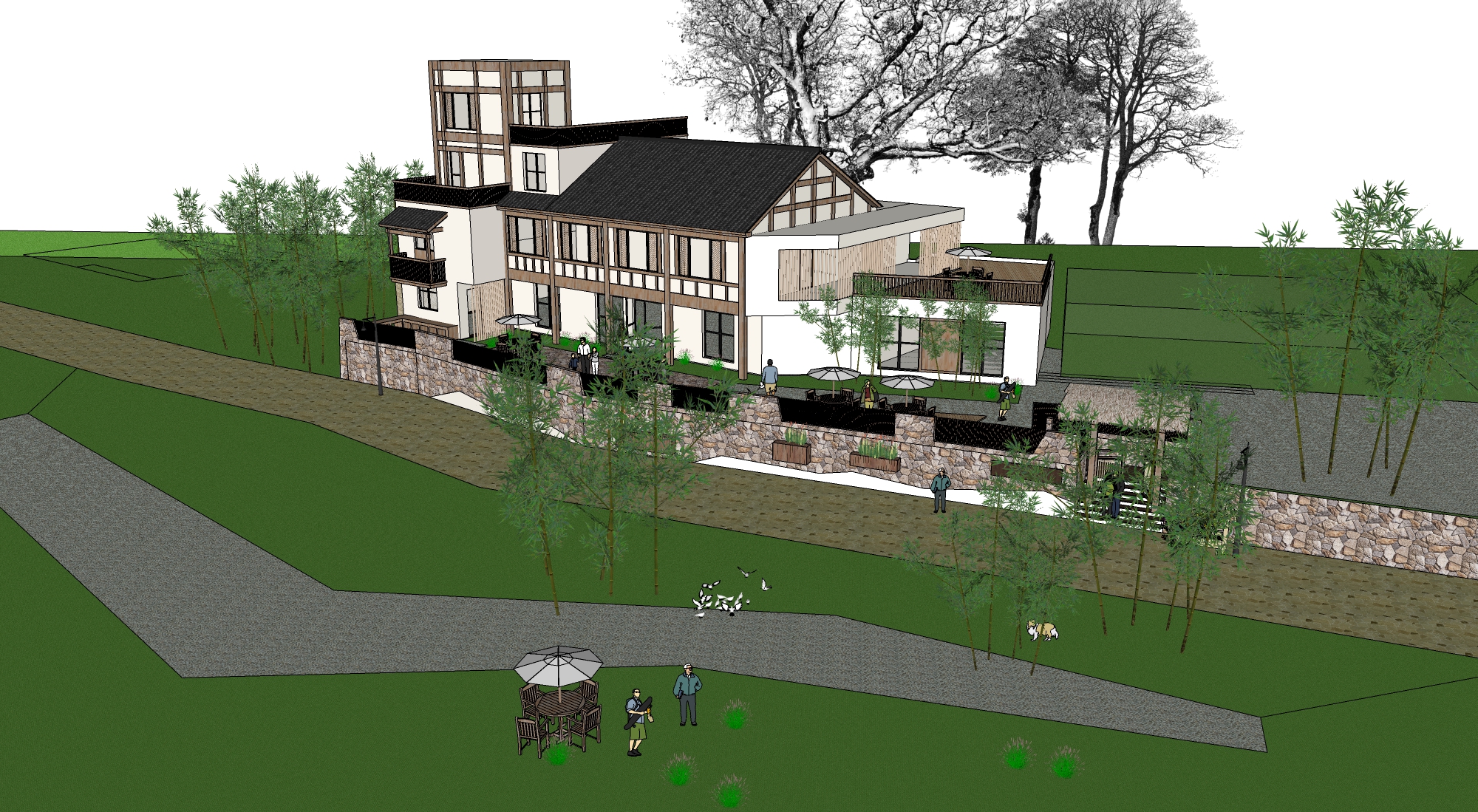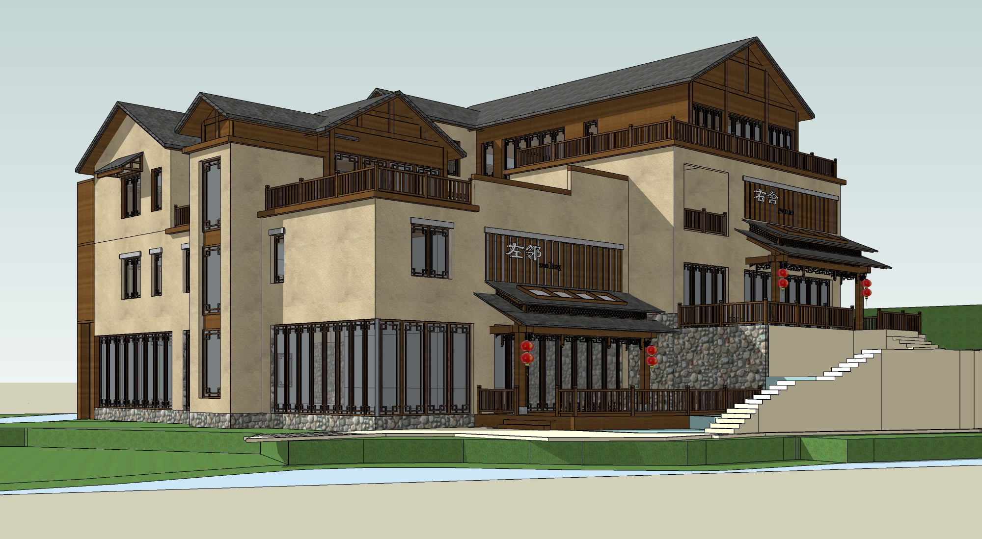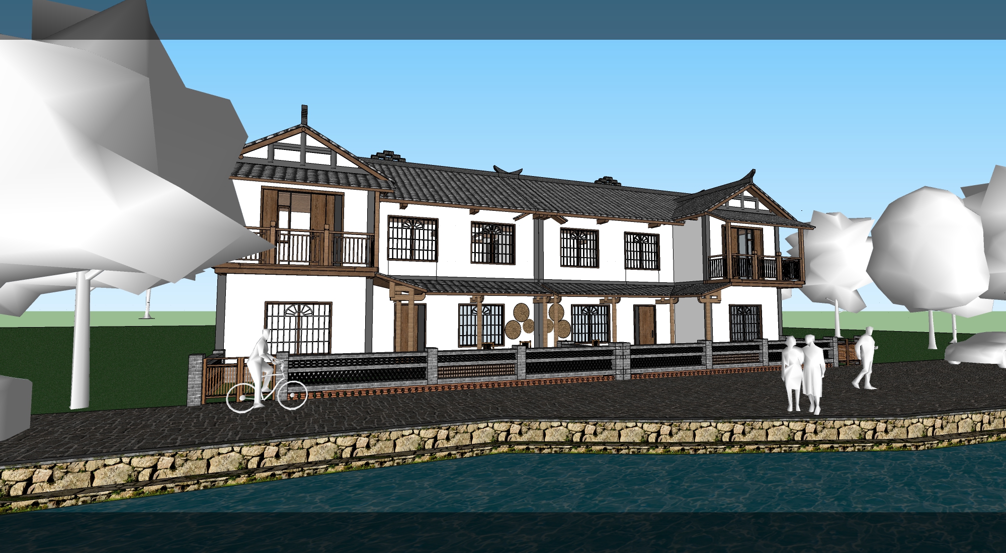 新中式民宿客栈建筑景观SU模型下载
