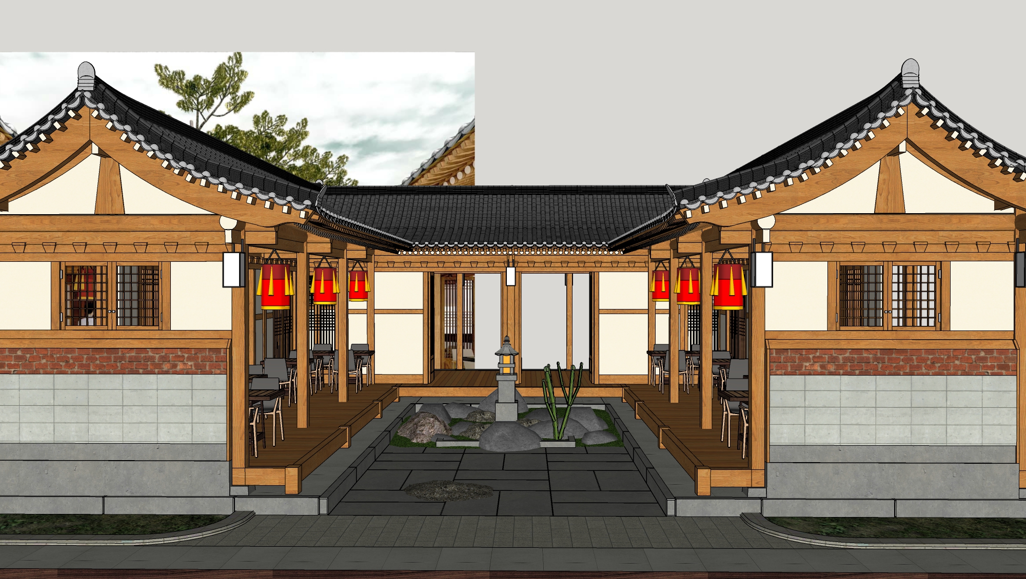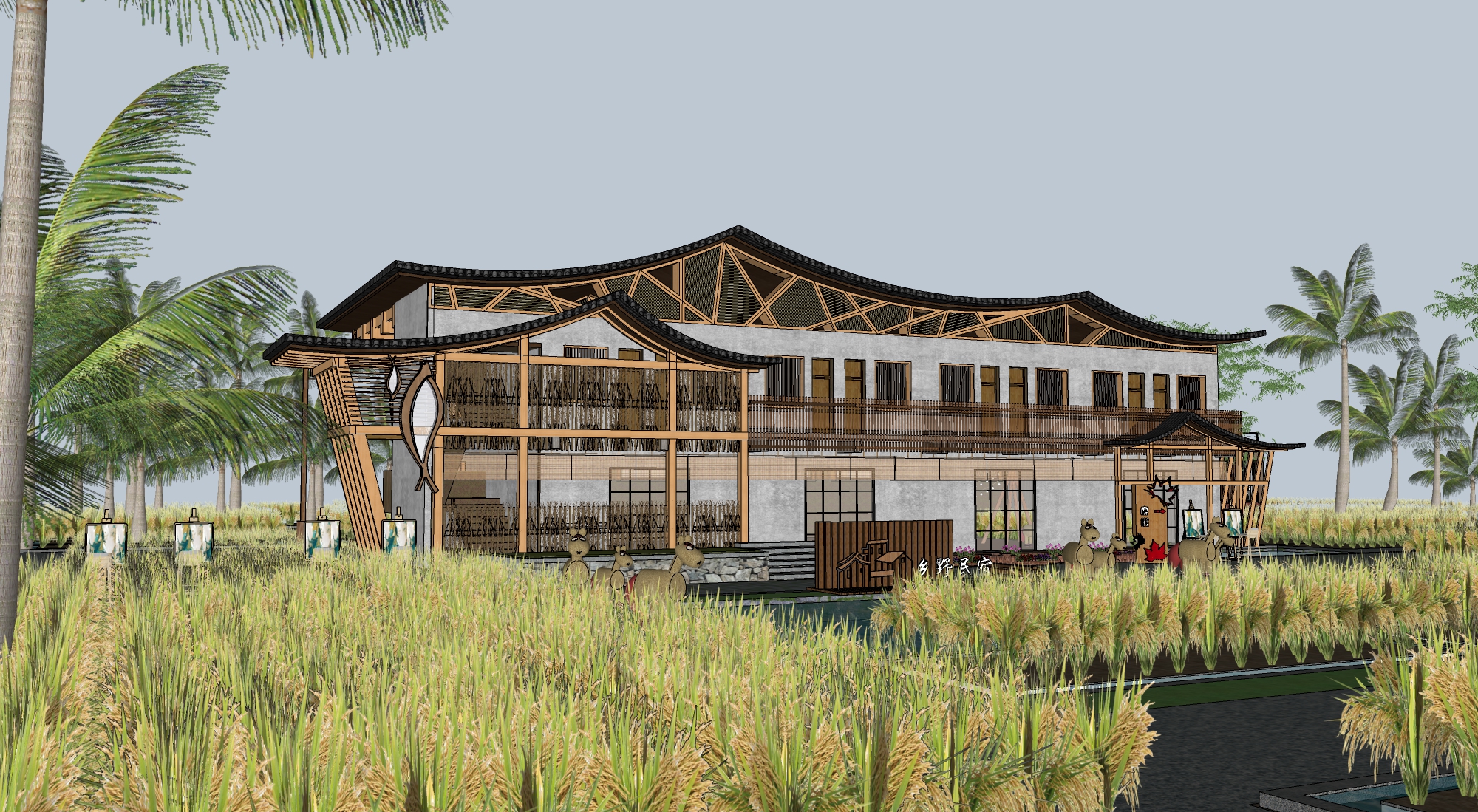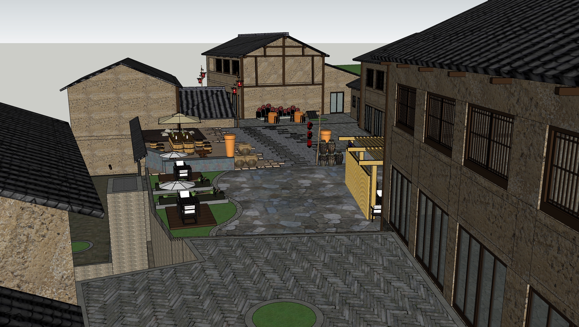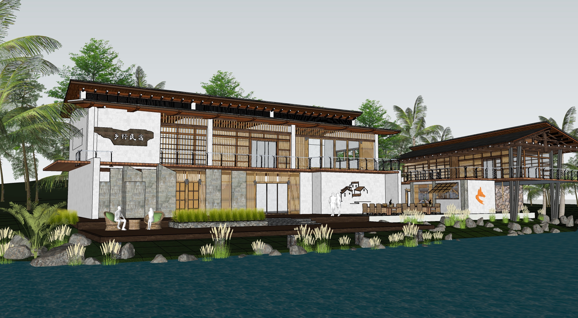 新中式民宿客栈建筑景观SU模型下载