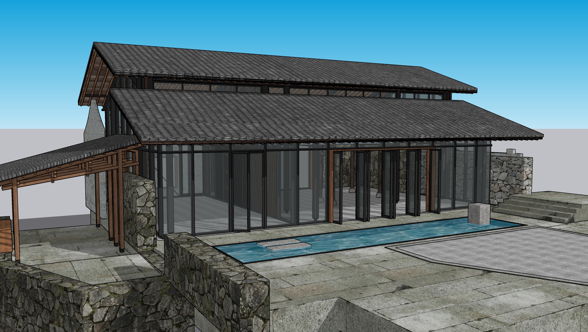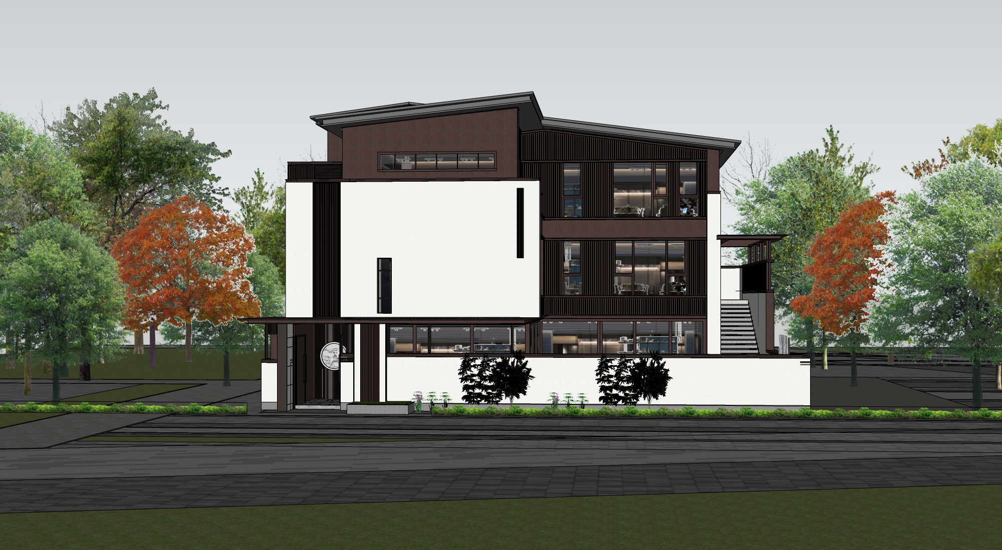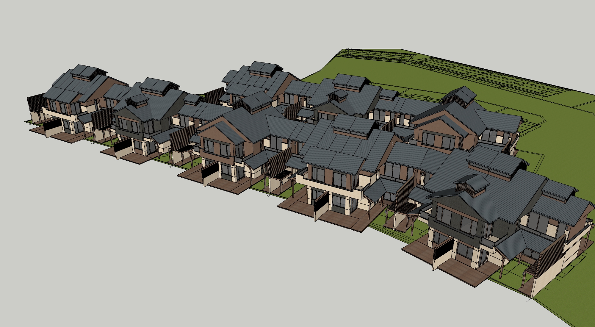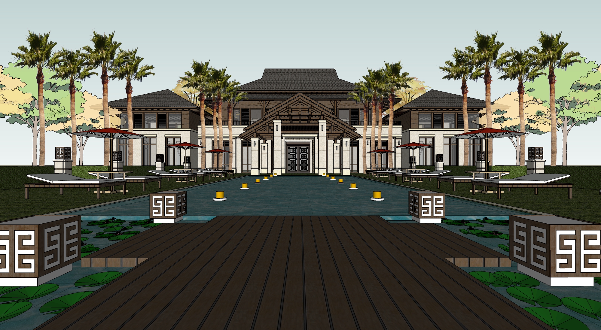 新中式民宿客栈建筑景观SU模型下载