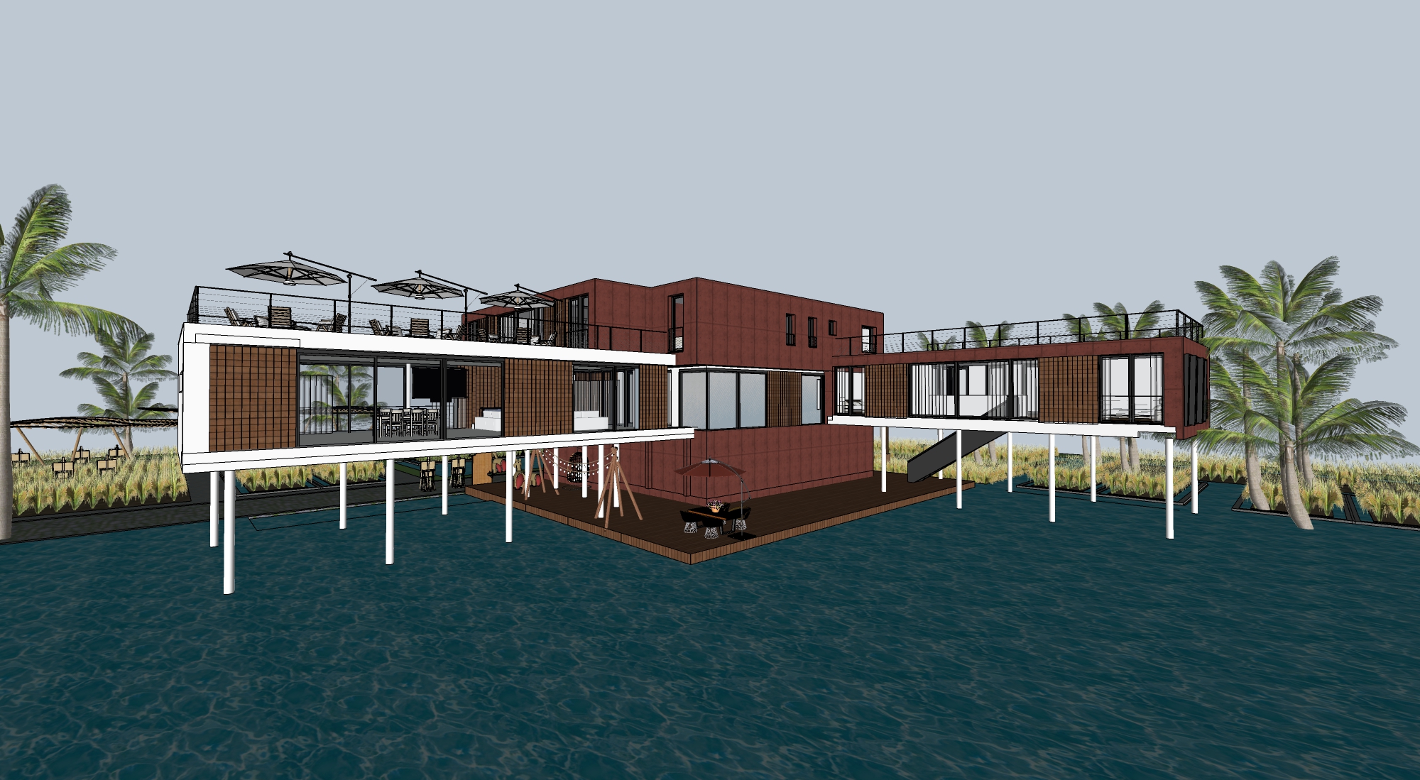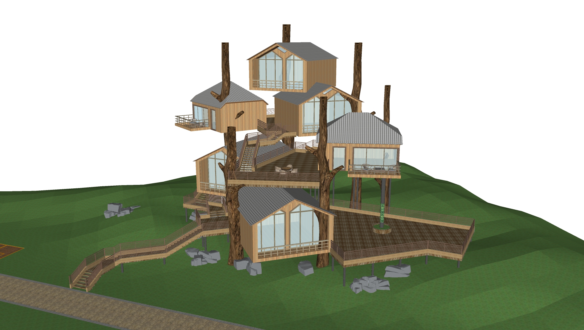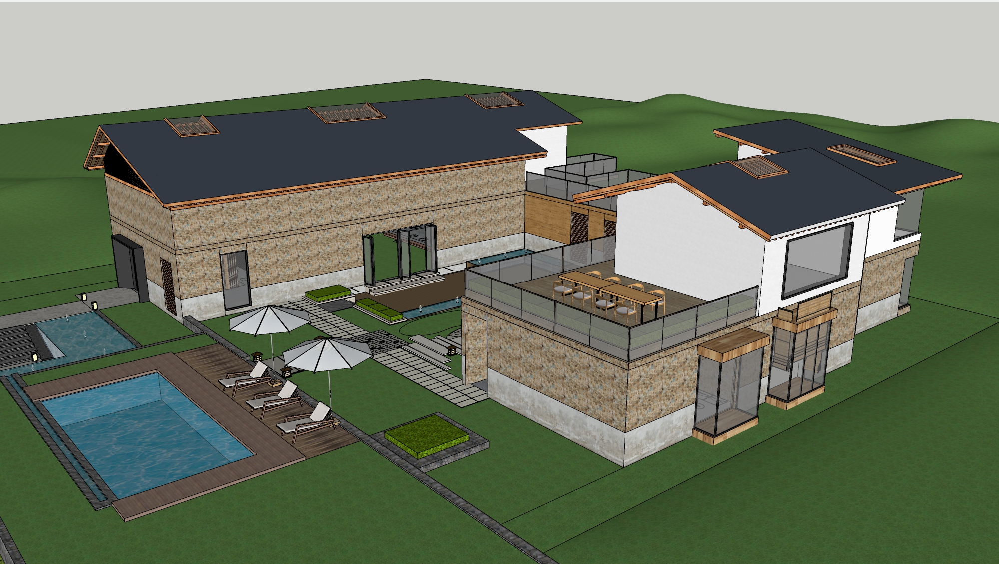 现代民宿 度假酒店建筑SU模型下载